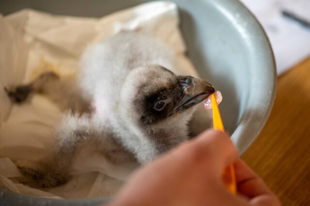 Mehrmals täglich wurde das Küken von den Tierpflegenden gefüttert.