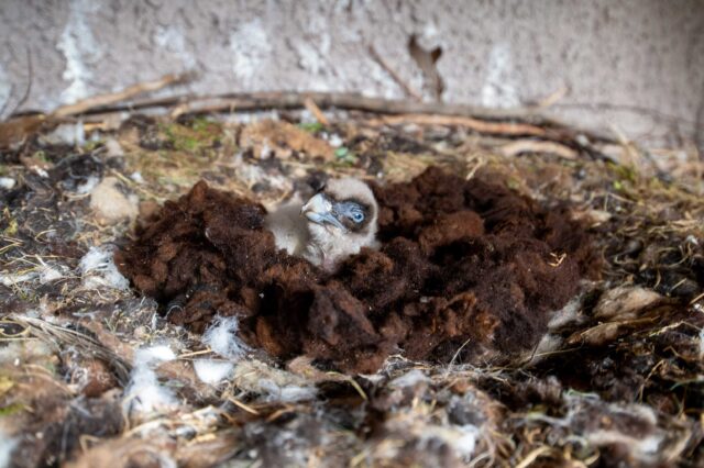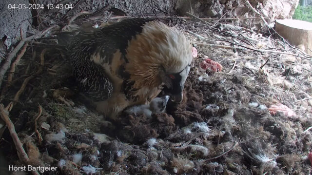 Die Bartgeier können bei der Aufzucht ihres Kükens mittels Webcam beobachten werden.